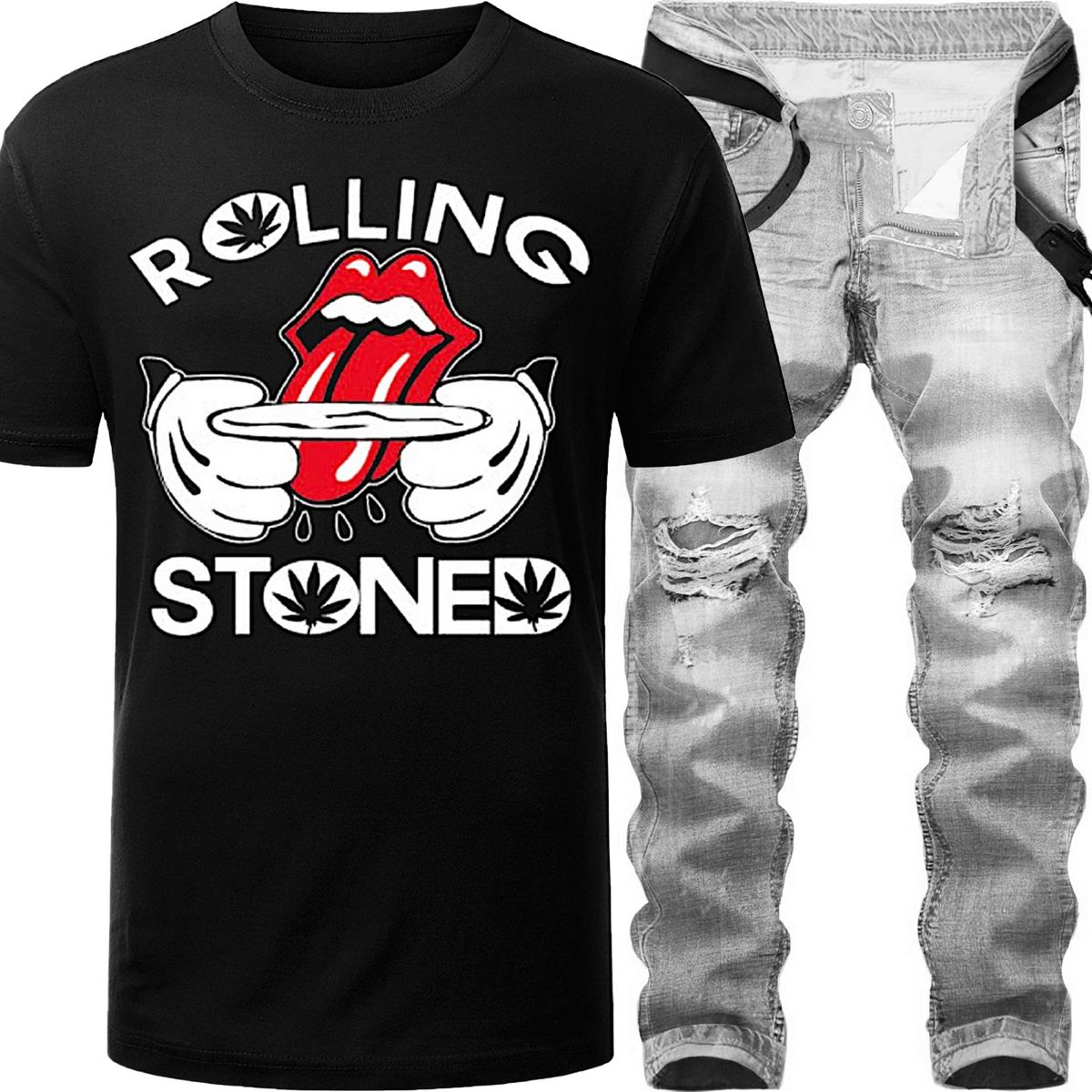 2pc Skinny Ripped Jeans+Graphic Print T-shirt π