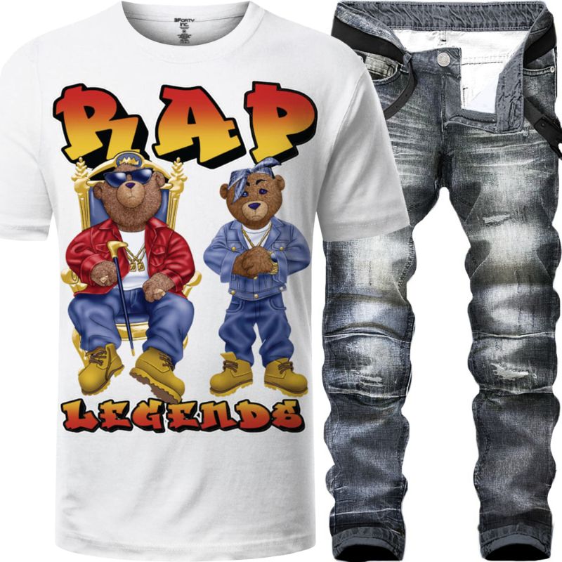 2pc Slim Ripped Jeans+Rap Legends T-shirt ⚡️
