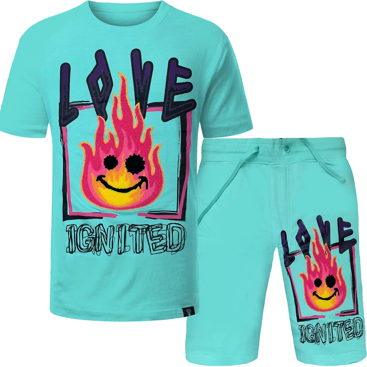 2pc Chenille Love Ignited T-shirt+Shorts Set ⚡️