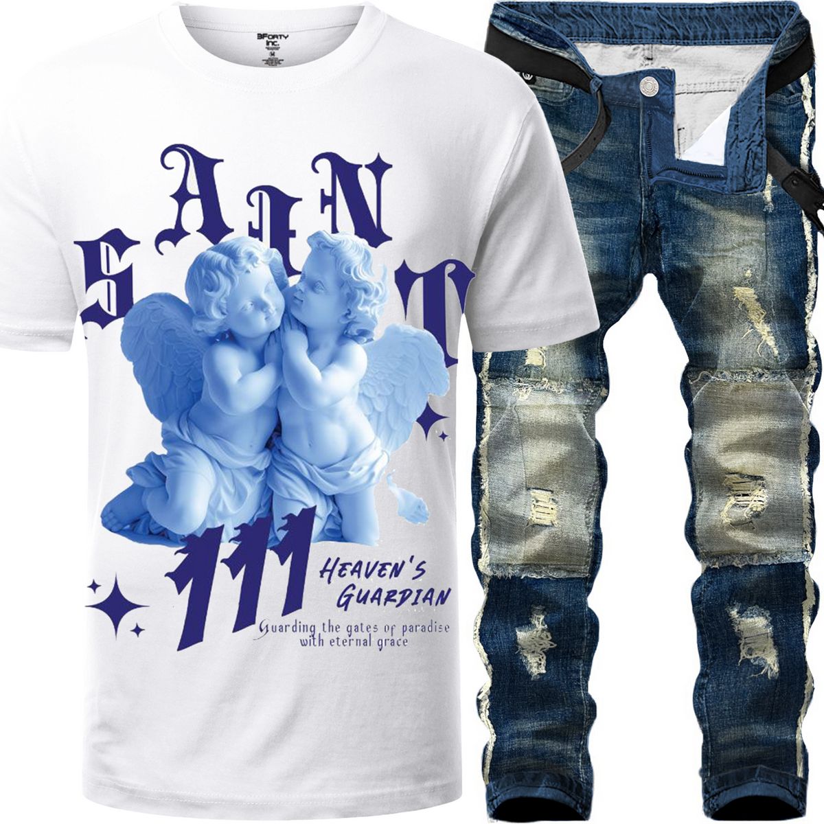 2pc Slim Patched Tapered+Saint Angels T-shirt ⚡️