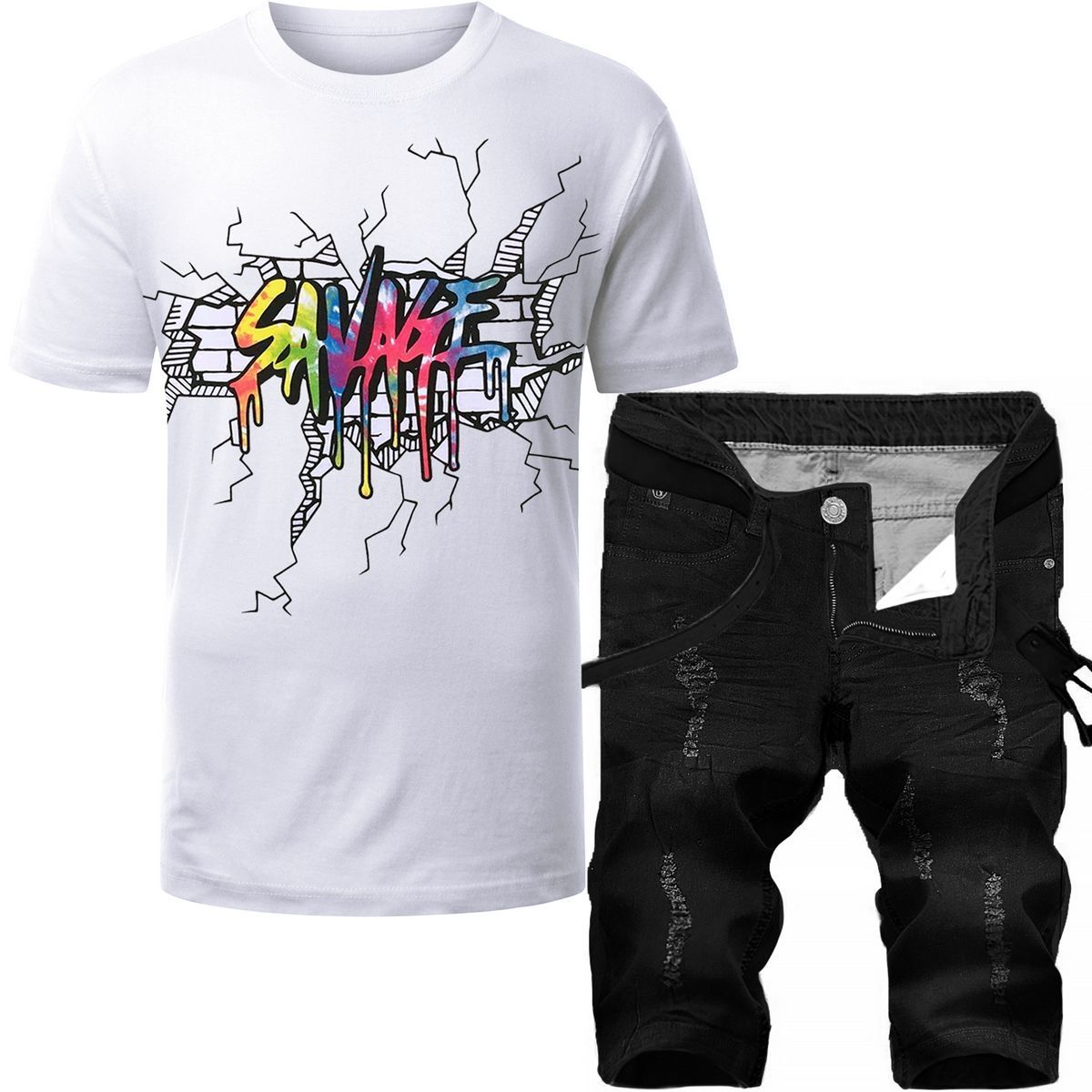 2pc Ripped Denim Shorts+SAVAGE T⚡