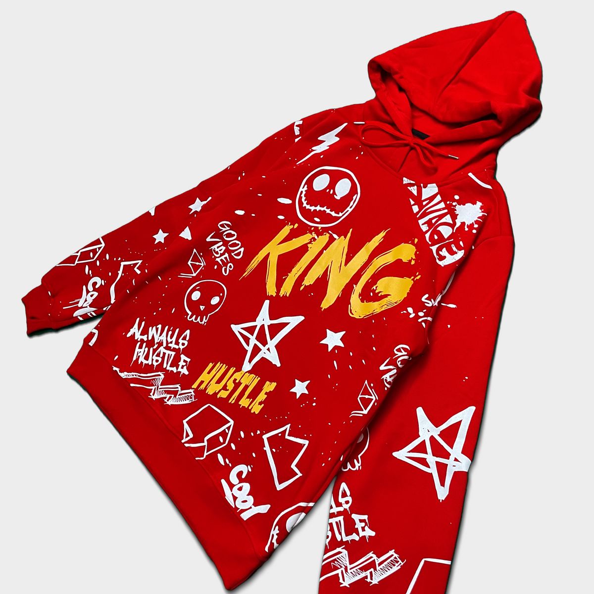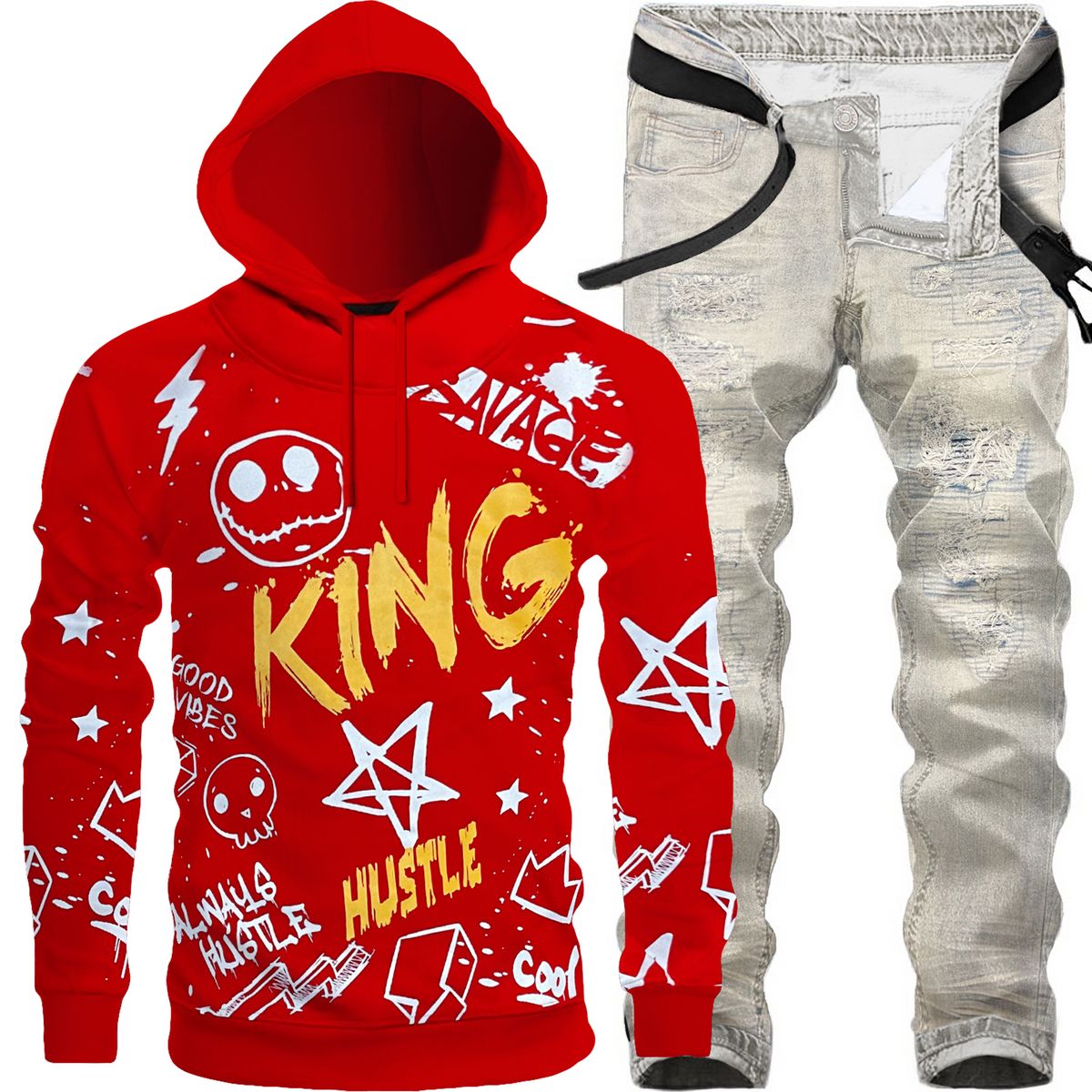 2pc Ripped Jeans+King Graffiti Hoodie ⚡️