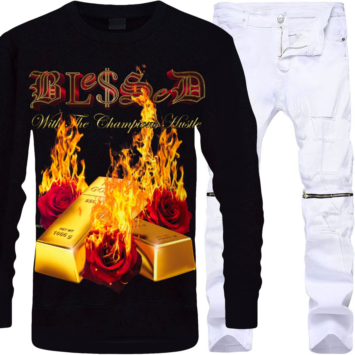 2pc Skinny Knee Zippers Jeans+Blessed Sweatshirt ⚡