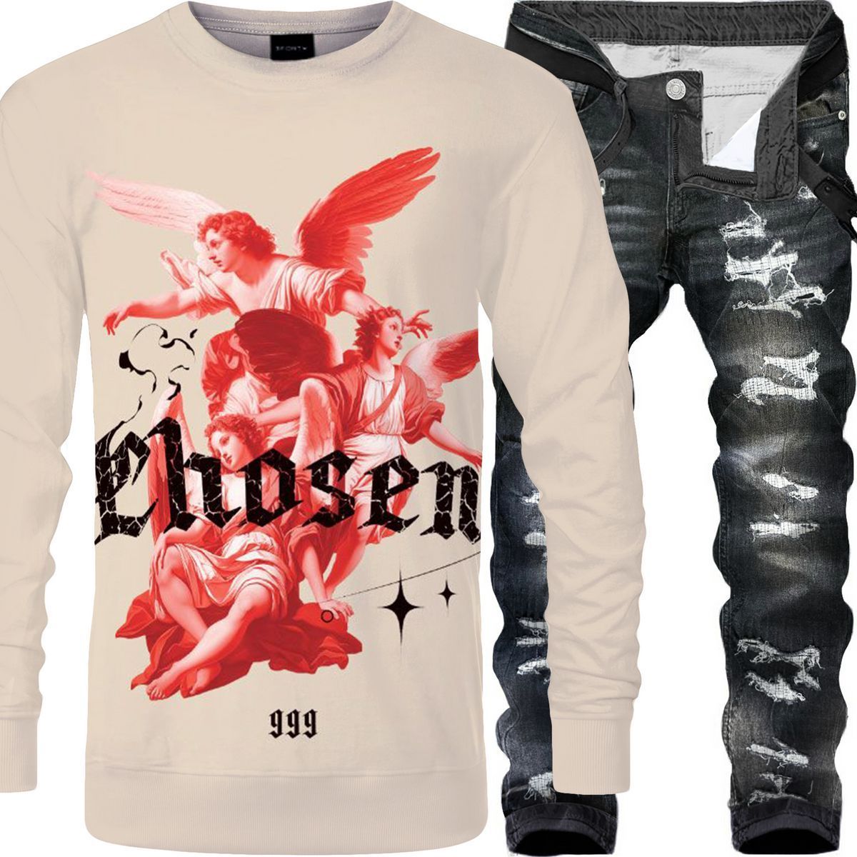 2pc Skinny Ripped Jeans+Chosen Angles Sweatshirt ⚡️