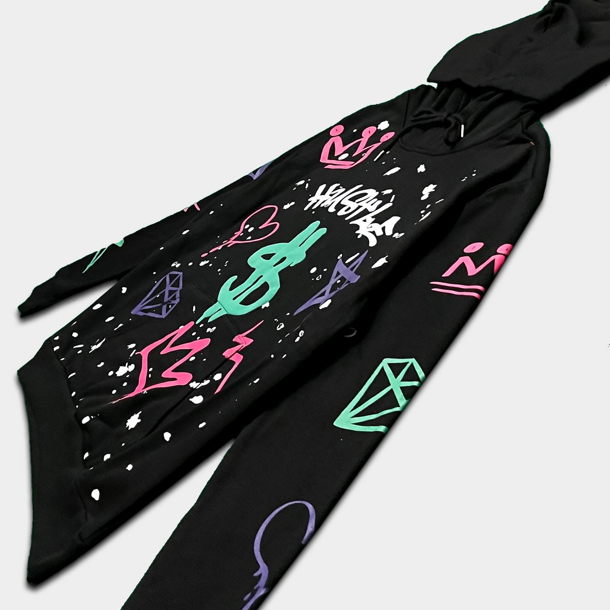 2pc Skinny Stars Jeans_Hustle Graffiti Hoodie ⚡️