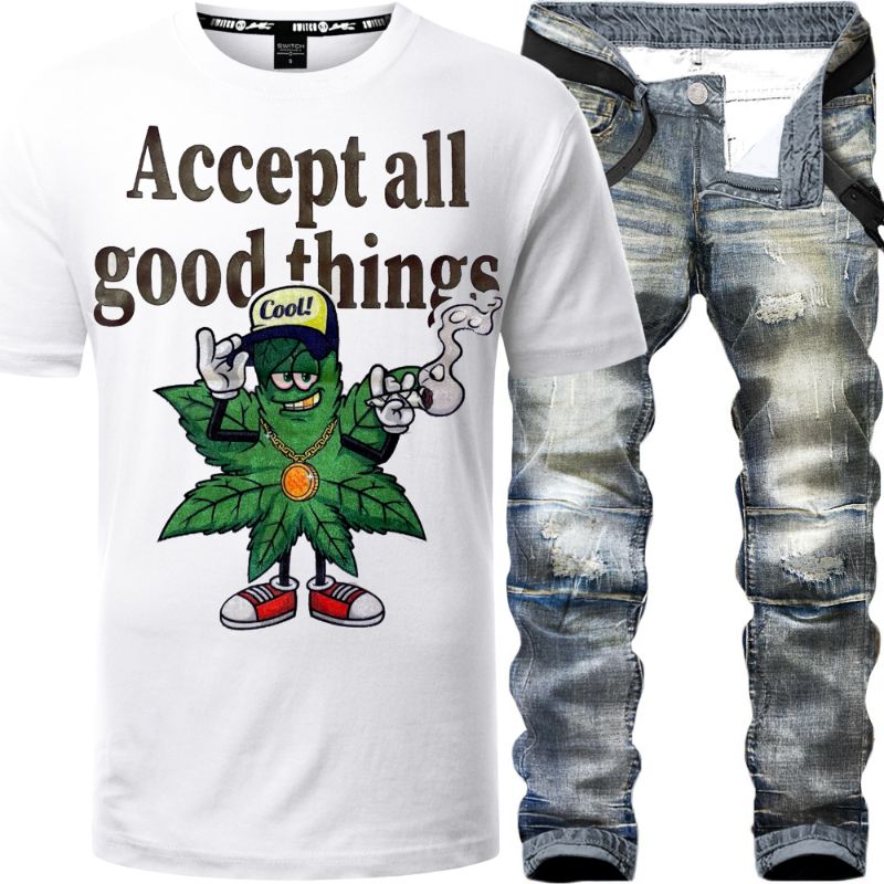 2pc Slim Ripped Jeans+Accept All Good Things T-shirt ⚡️