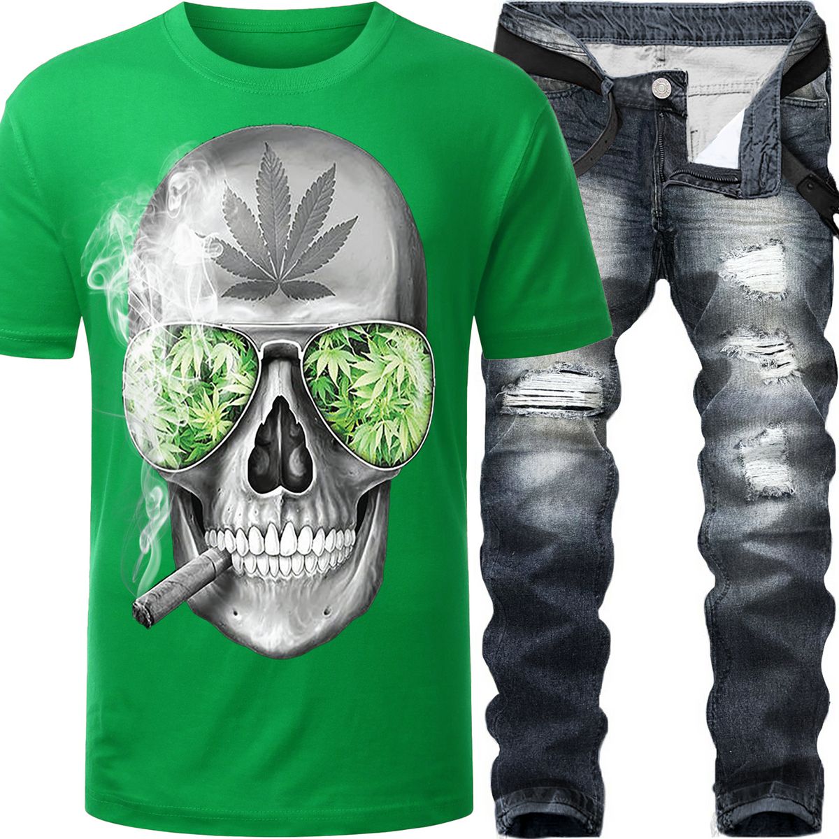 2pc Slim Ripped Jeans+Graphic Print T π