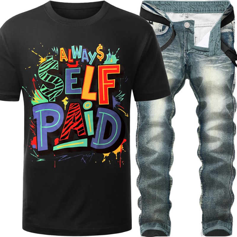 2pc Straight Jeans+Self Paid T-shirt ⚡