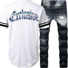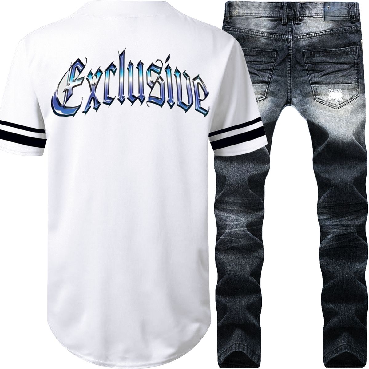 2pc Straight Ripped Jeans+2 Sides Exclusive Baseball Jersey ⚡