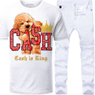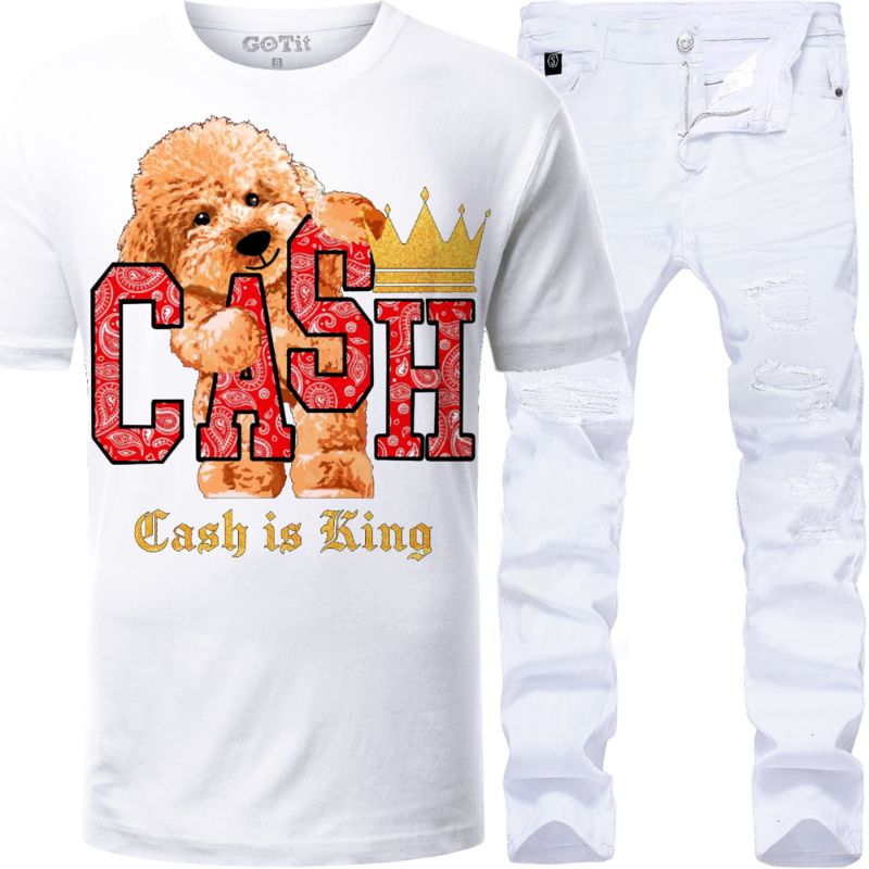 2pc Straight Ripped Jeans+Cash is King T-shirt ⚡️