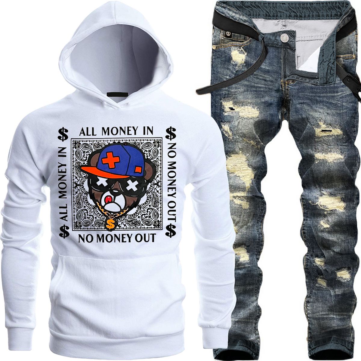 2pc Slim Tapered Ripped Zippers Jeans+Money in Hoodie ⚡️