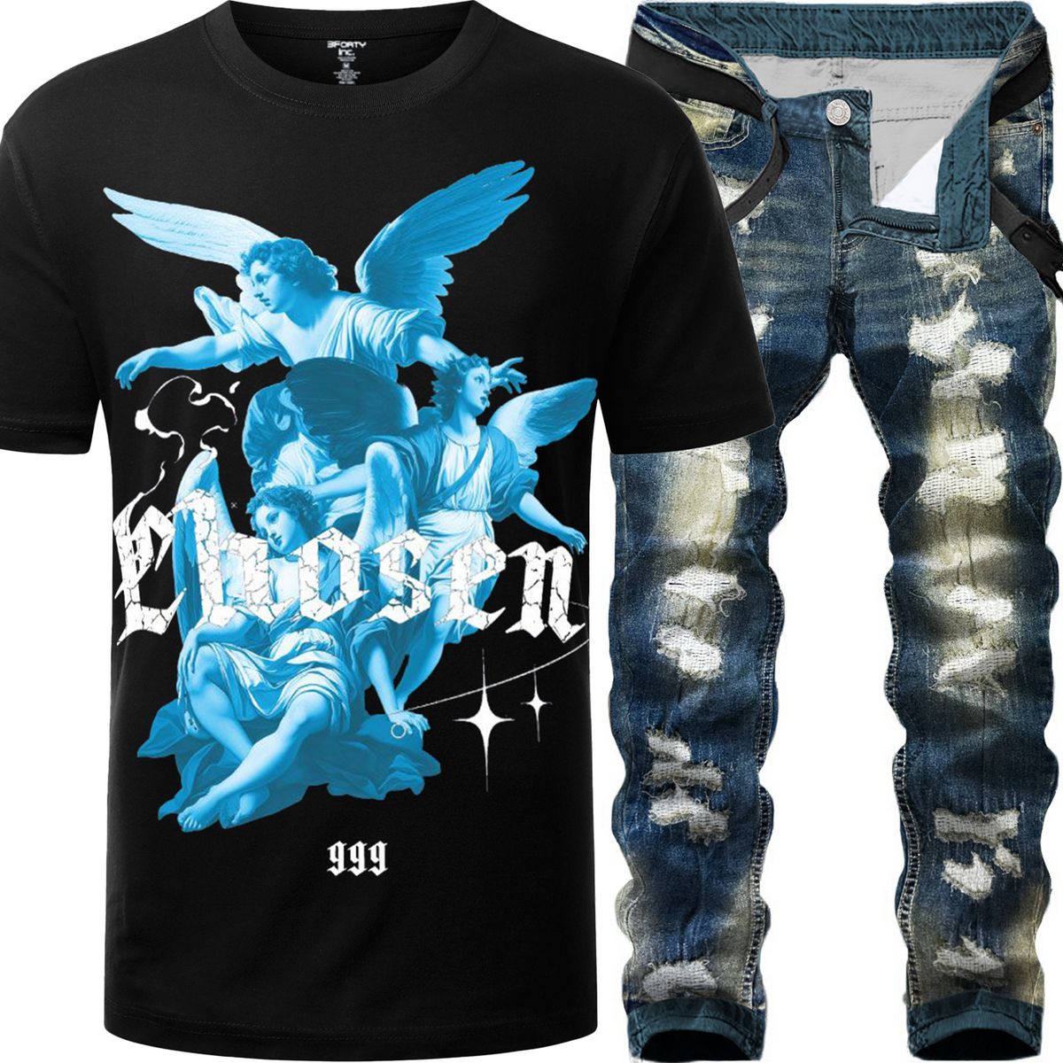 2pc Skinny Ripped Jeans+Chosen Angles T-shirt ⚡️