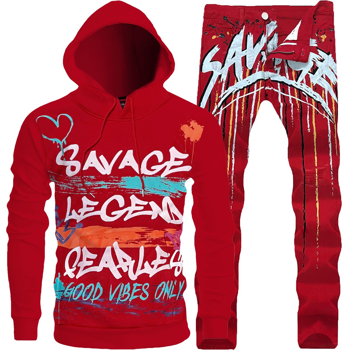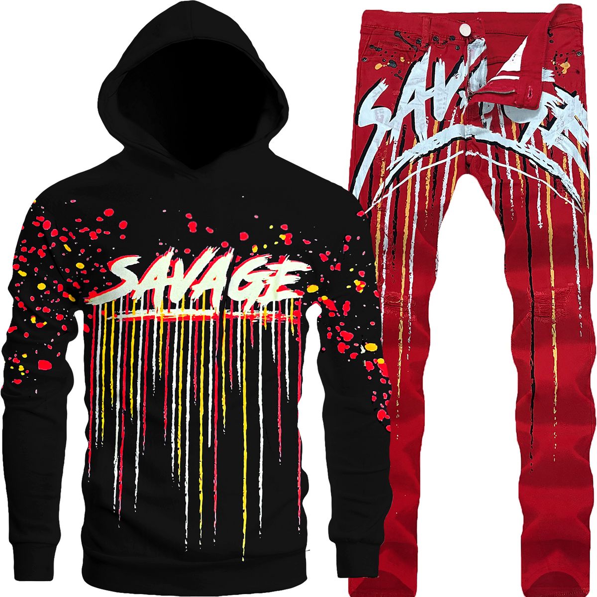 2pc Skinny SAVAGE Dripping Jeans+Hoodie Set ⚡