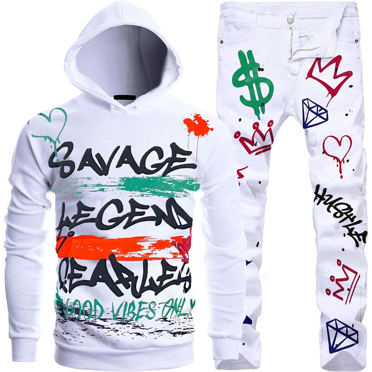 2pc Graffiti Print Skinny Jeans+Hoodie Set ⚡️