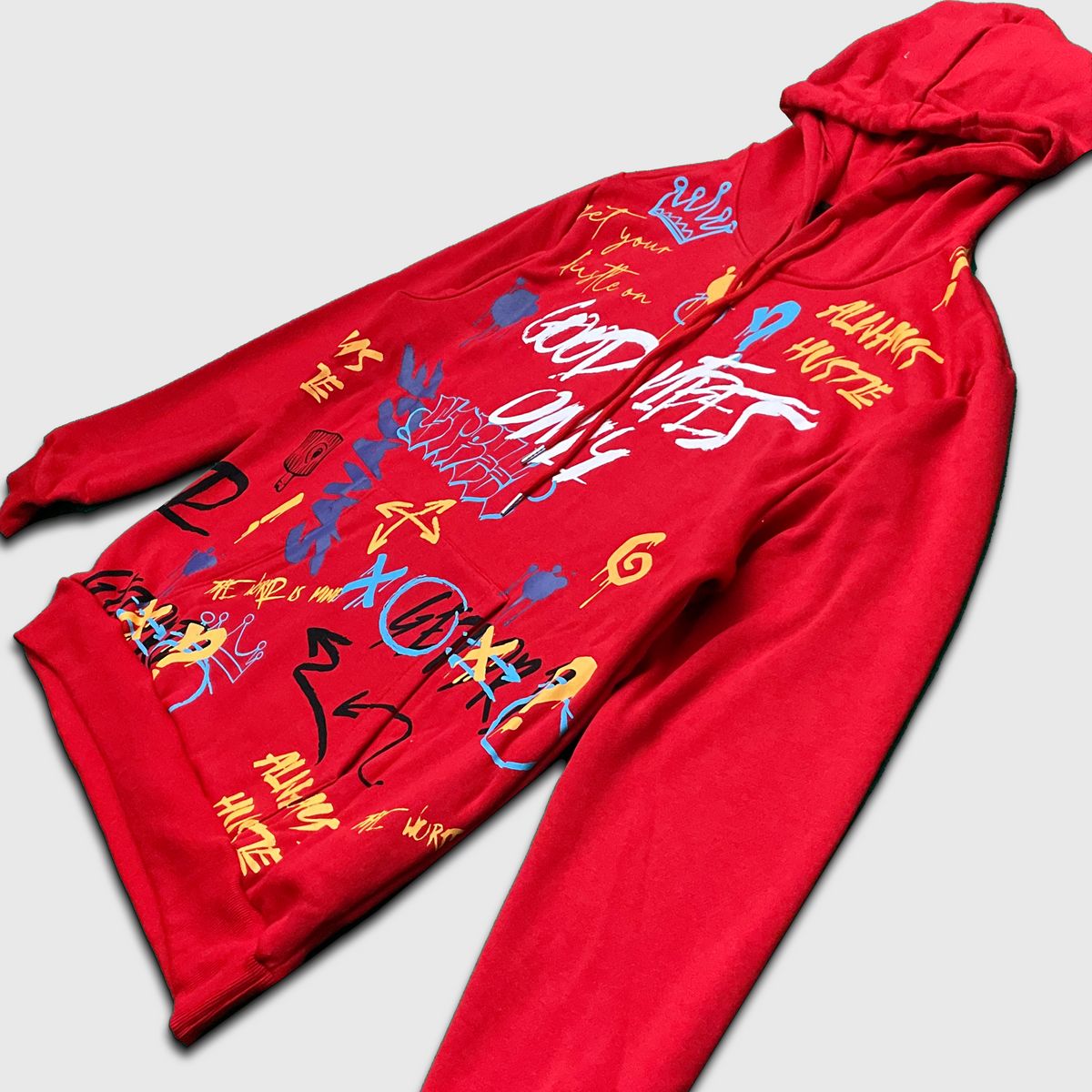 2pc Skinny Rip Repaired Jeans+Hustle Graffiti Hoodie ⚡️