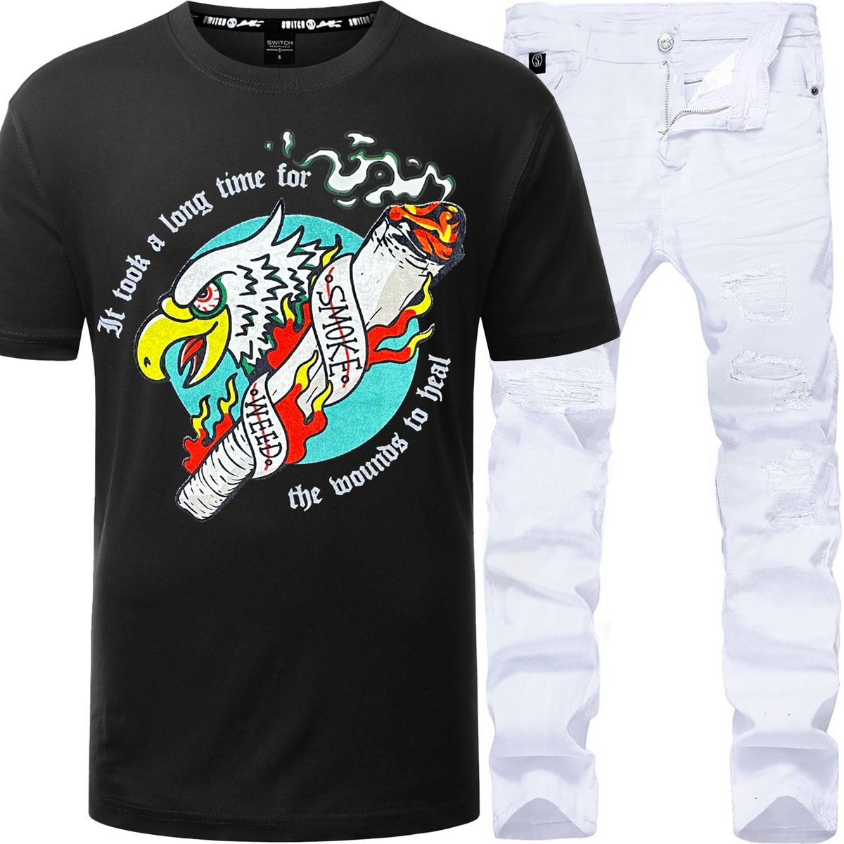 2pc Slim Ripped Jeans+Graphic Print T 💎