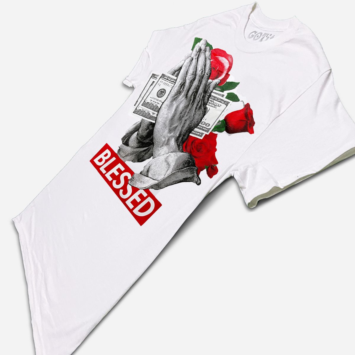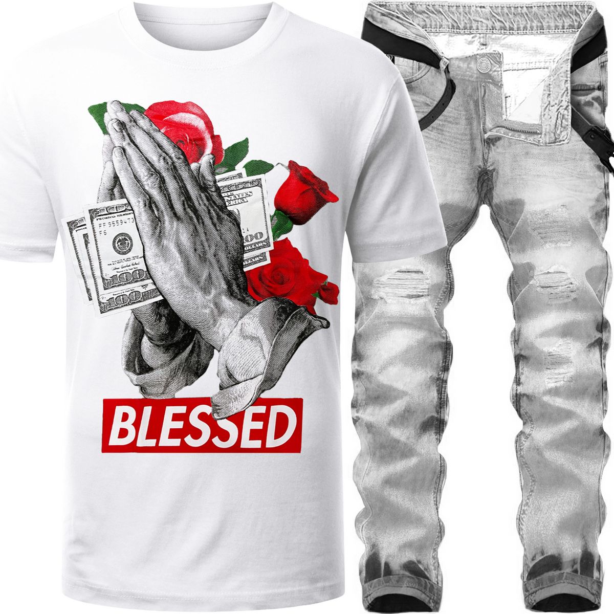 2pc Straight Iced Wash Jeans+Blessed T-shirt ⚡️