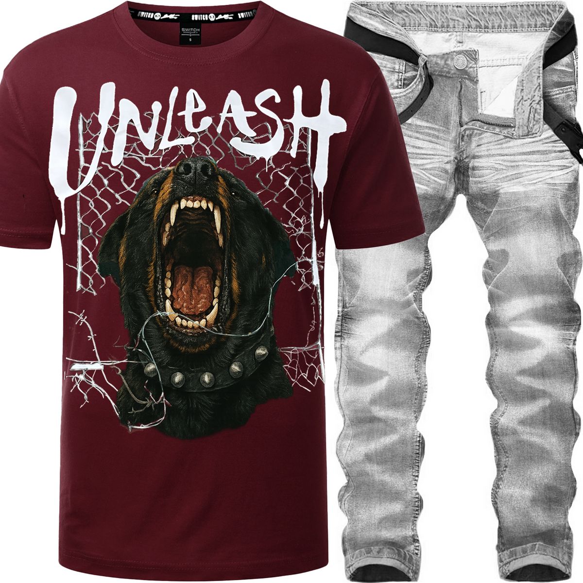2pc Slim Tapered Jeans+Unleash T-shirt ⚡️