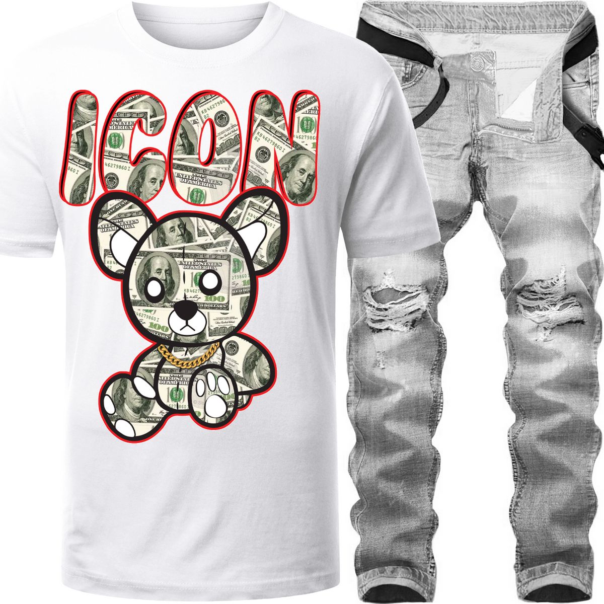 2pc Skinny Ripped Jeans+Icon Bear T-shirt 💎