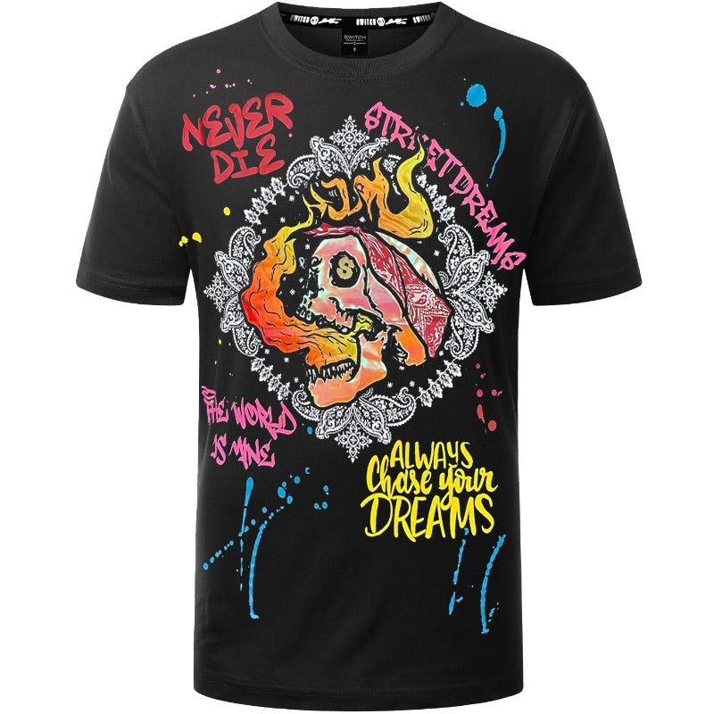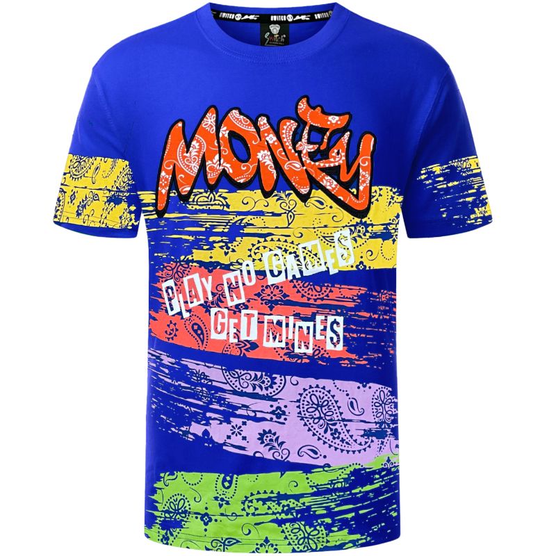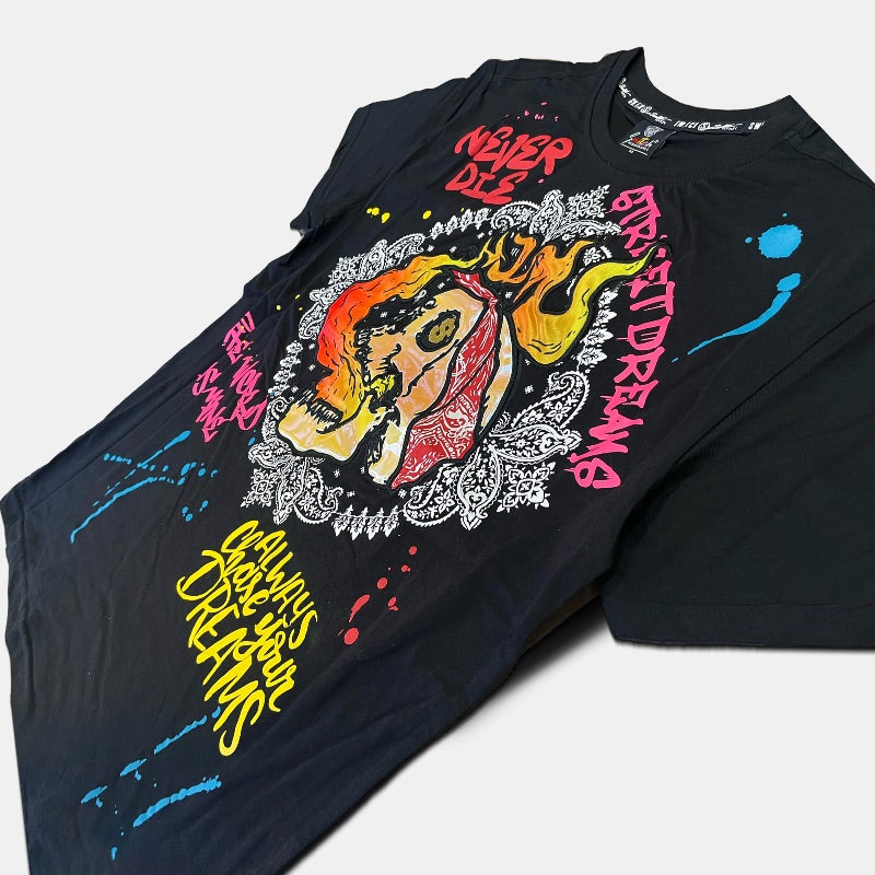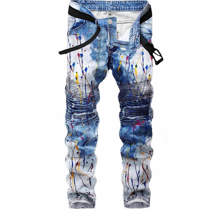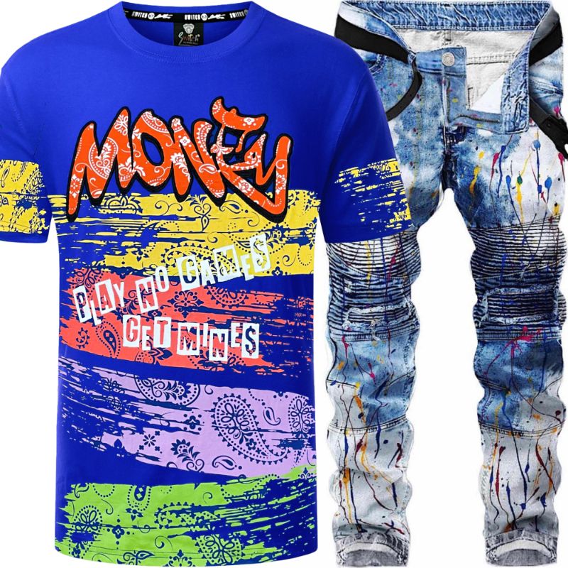 2pc Slim Neon Splatter Biker Jeans+Money Bandana T-shirt π