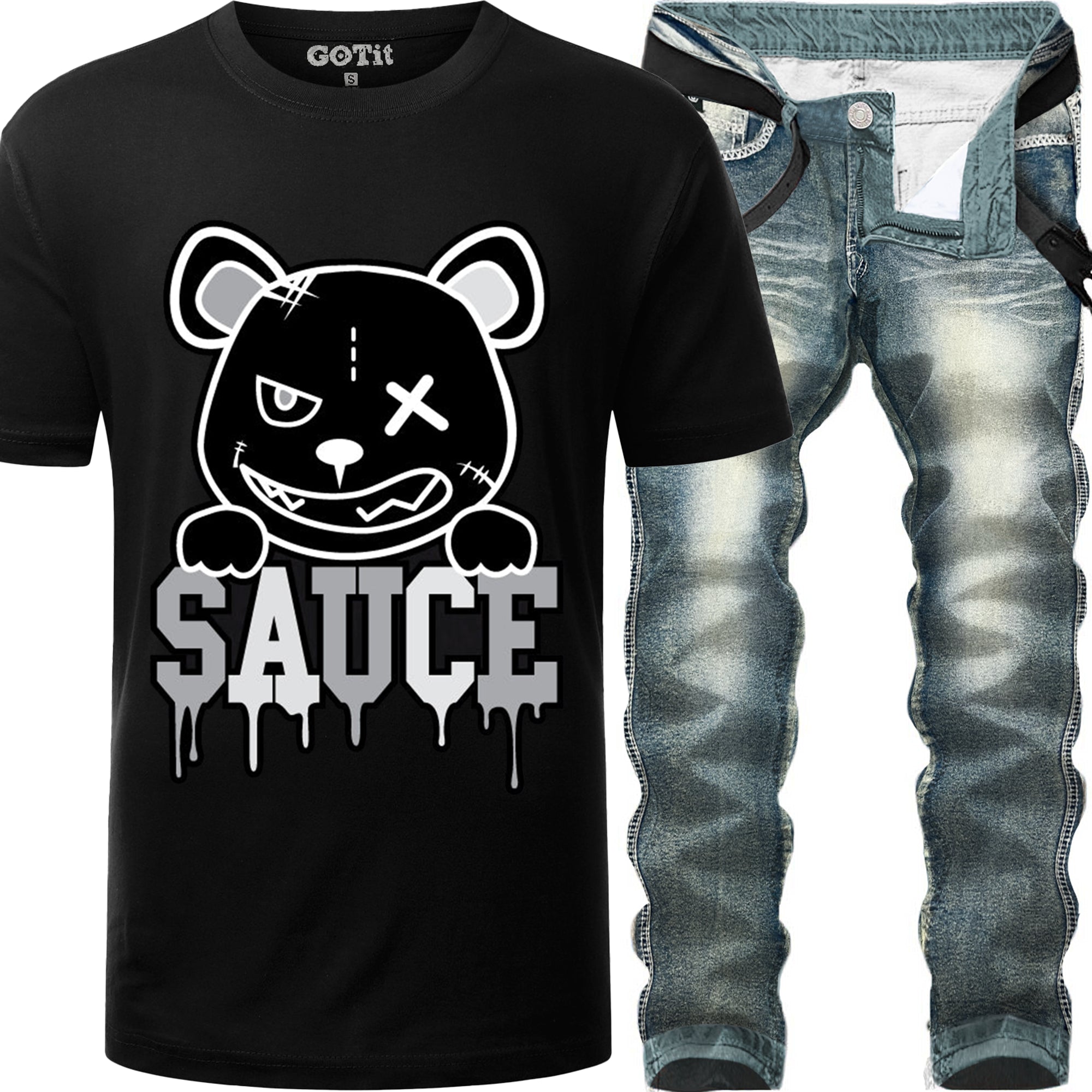 2pc Straight Jeans+Sauce Bear T-shirt β‘οΈ