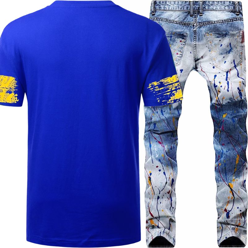 2pc Skinny SAVAGE Dripping Jeans+T-shirt Set β‘οΈ