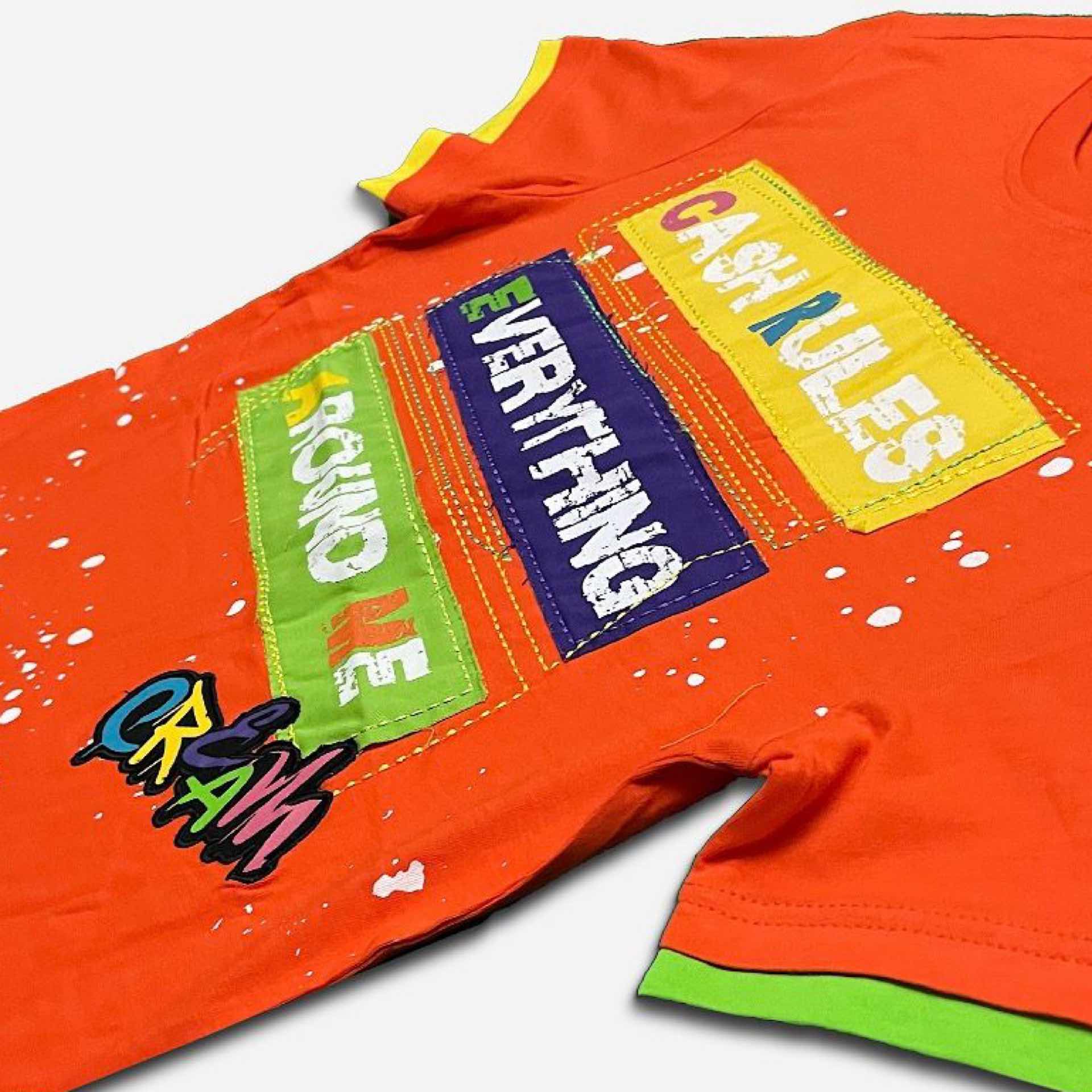 2pc Cash Rules Patch Splatter Shorts Set ⚡️
