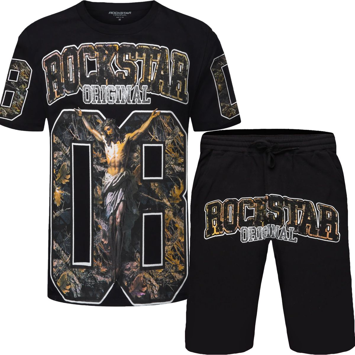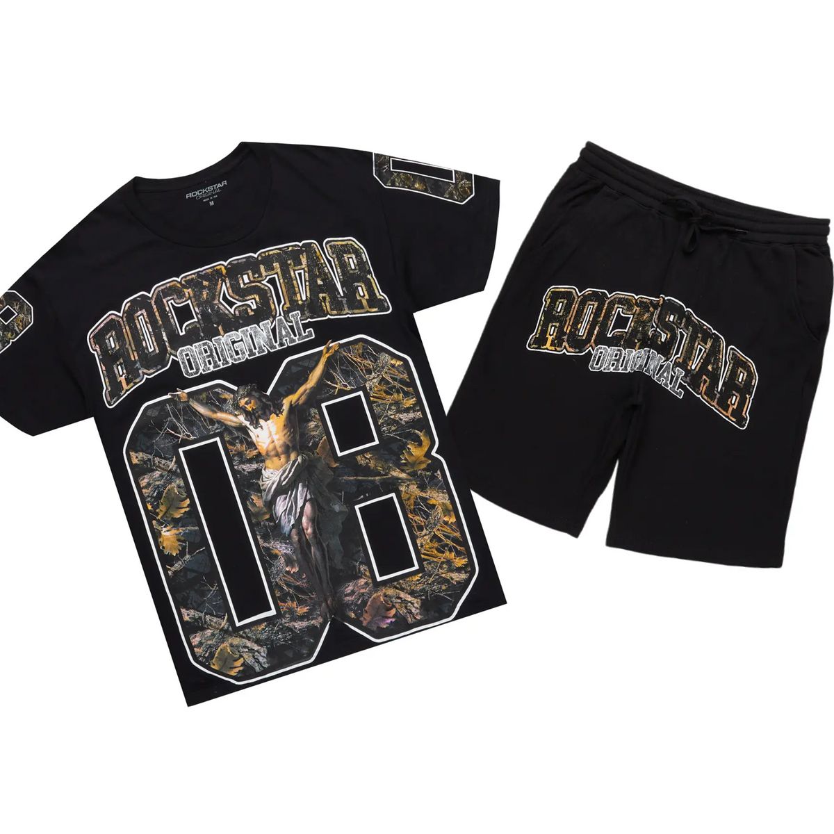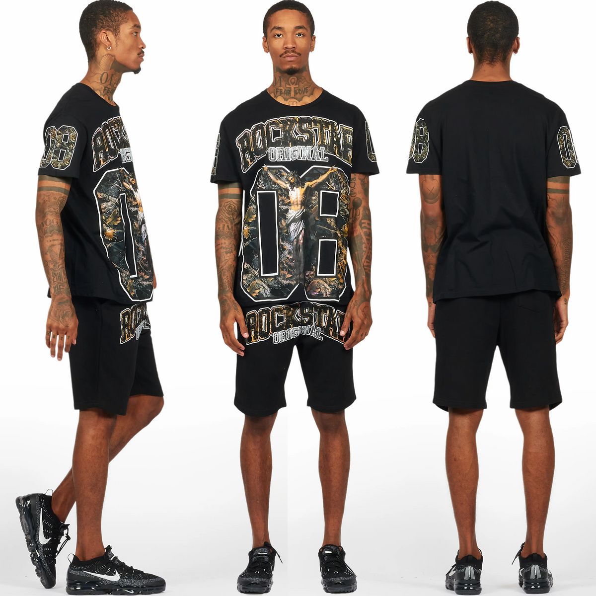 Top Quality ⚡Limited inventory ⚡Sizes S-3XL⚡ An urban two-piece athleisure tee and short set for men in black. Designed with organic cotton and custom detailing for a lightweight everyday set. Crew neckline Short sleeves Pullover style Relaxed-fit Drawstring waistband Mid-rise waist line Dual slant pockets Barrel-leg trousers