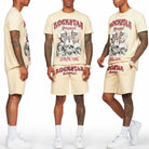 Top Quality ⚡Limited inventory ⚡Sizes S-3XL⚡A casual urban two-piece tee and short set for men in beige. Designed with ultra soft organic cotton and custom detailing for the perfect everyday athleisure set. Rounded neckline Short sleeves Relaxed-fit Drawstring waistband Slant pockets Printed RSO logos