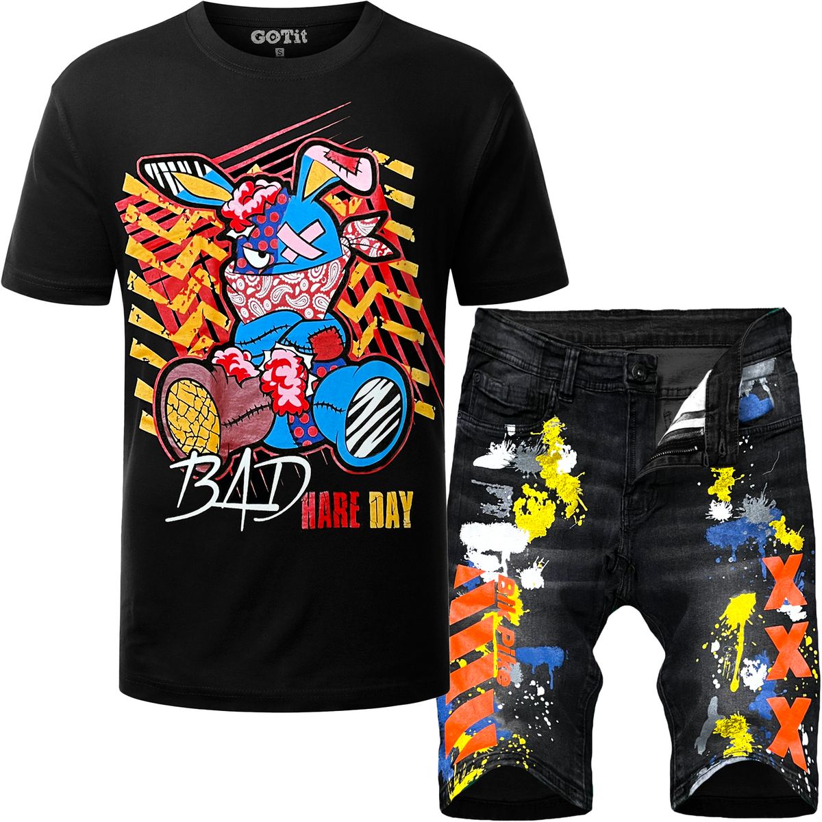 2pc Splatter Denim Shorts+Bunny T-shirt 💎