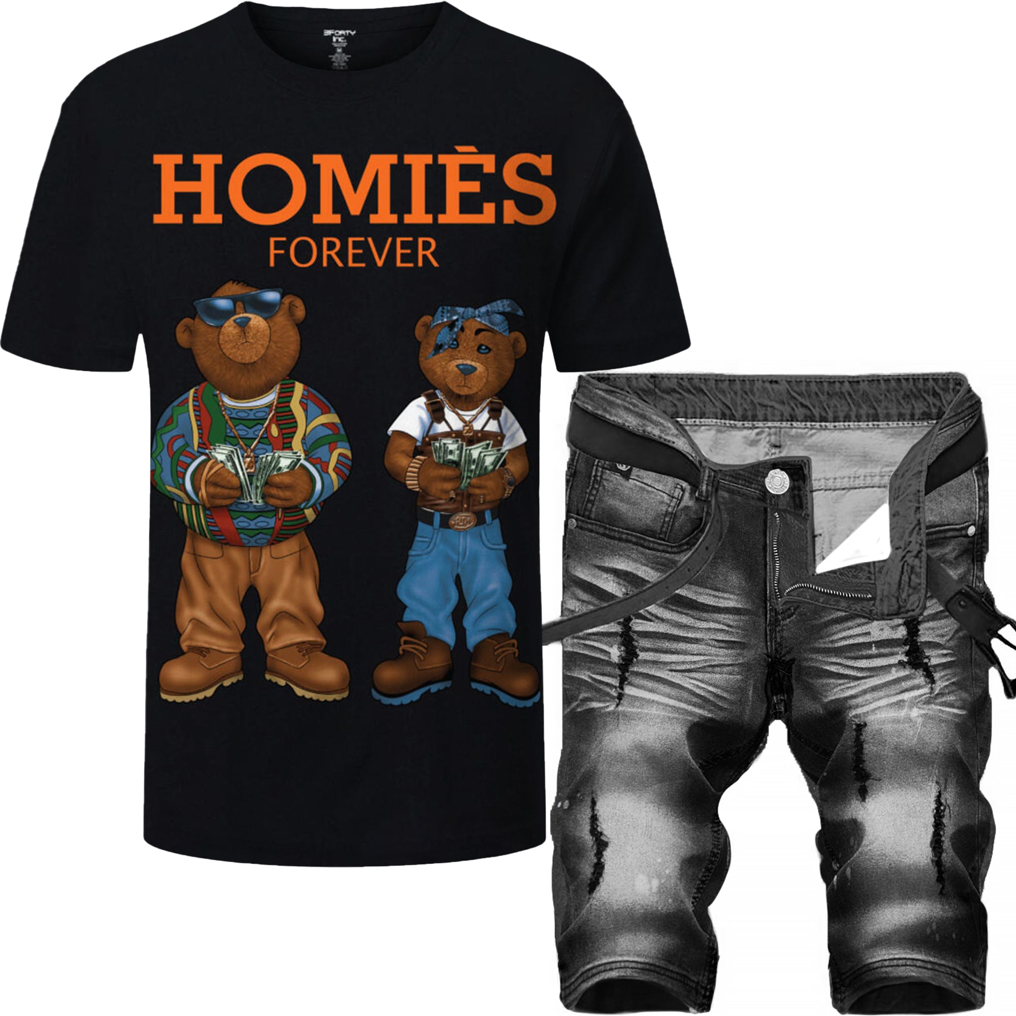 2pc Ripped Denim Shorts+Homies T-shirt ⚡