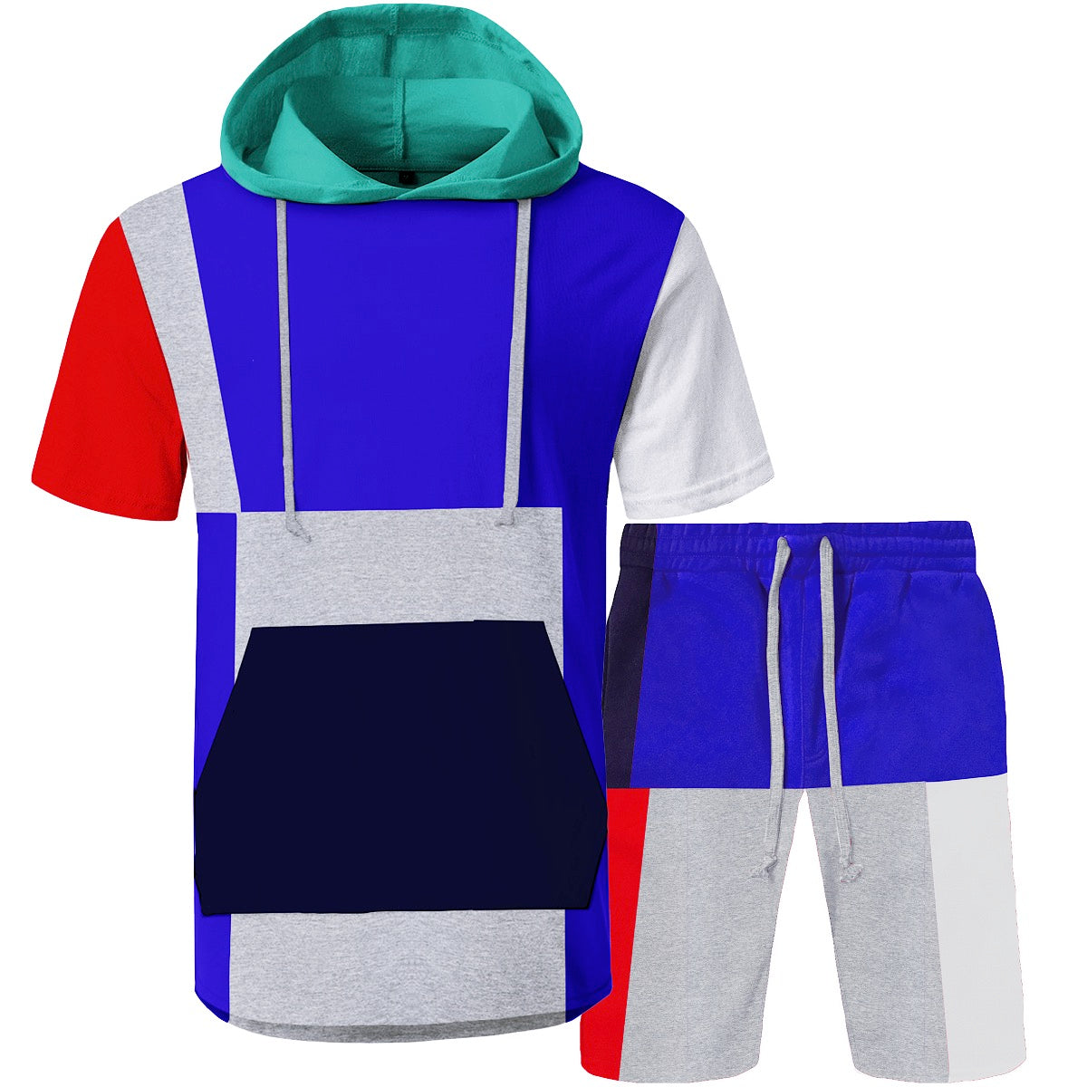 2pc Color Block Hooded Shirt+Shorts Set 💎