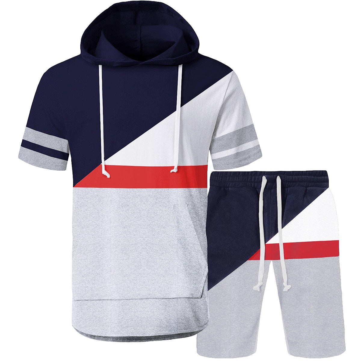 2pc Color Block Hooded Shirt+Shorts Set 💎