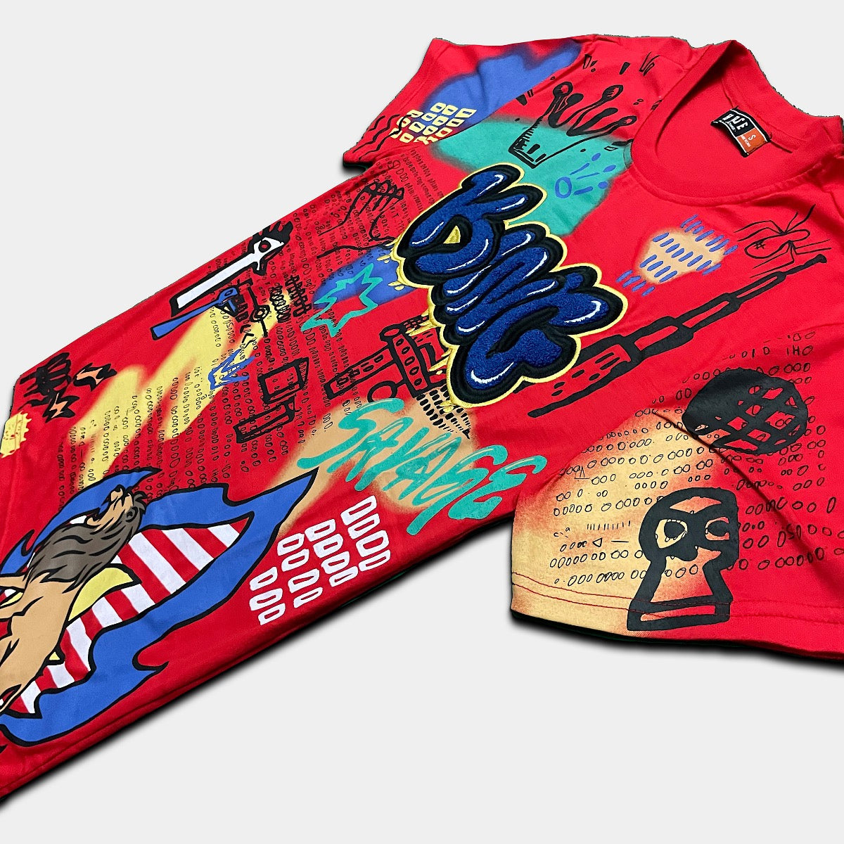 2pc Ripped Splatter Denim Shorts+Savage Mask T-shirt⚡