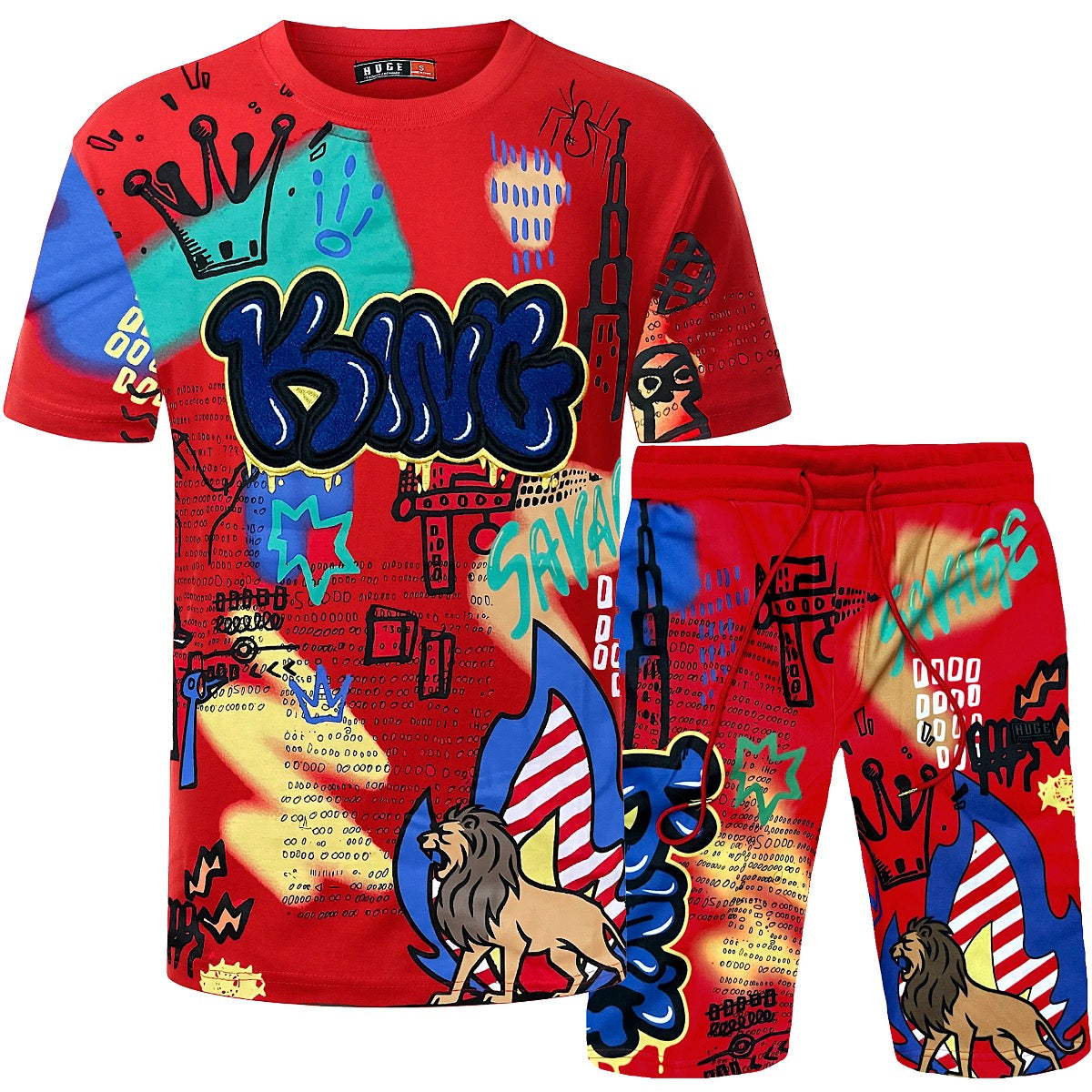King Graffiti Embroidered Shirt+Shorts Set ⚡