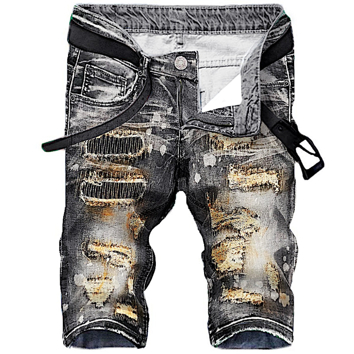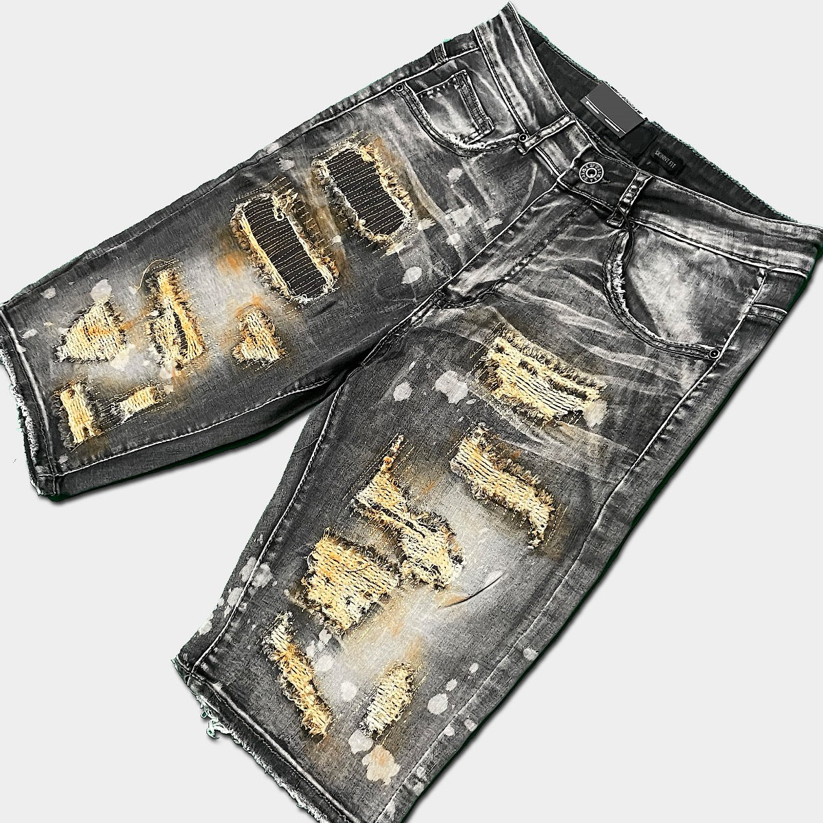 Slim Grey Wash Splatter Denim Shorts ⚡️