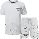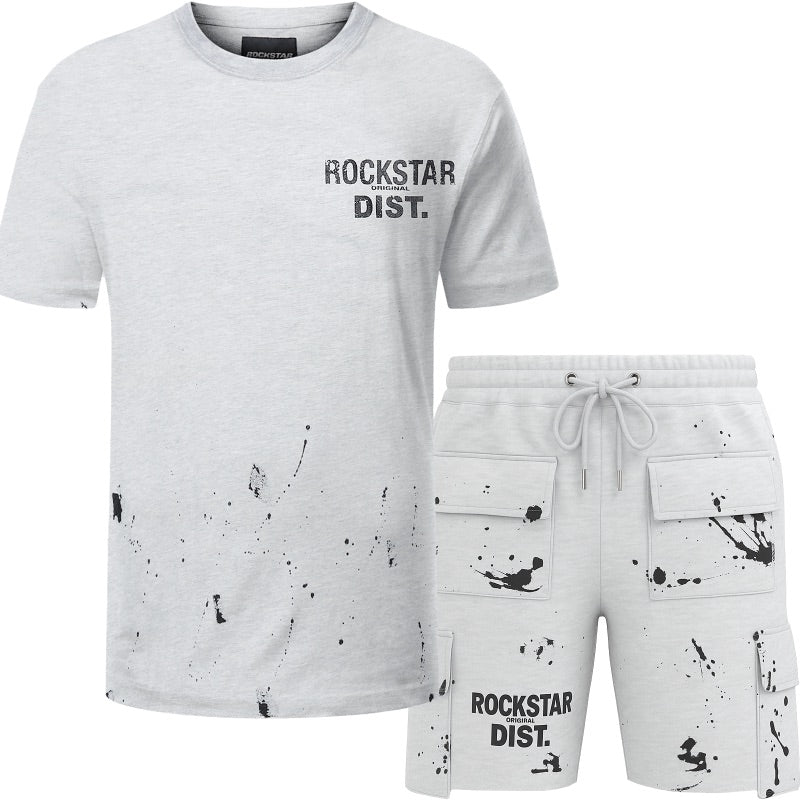 Top Quality ⚡Limited inventory ⚡Sizes S-3XL⚡Rockstar Original Men's two-piece short set in grey. Featuring raised silicone printed RSO logos throughout the top and bottoms. Top accents a crew neckline with a relaxed fit while bottoms accent a ribbed drawstring waistband with Velcro pockets, a high quality posterior zipper pocket and a relaxed fit.