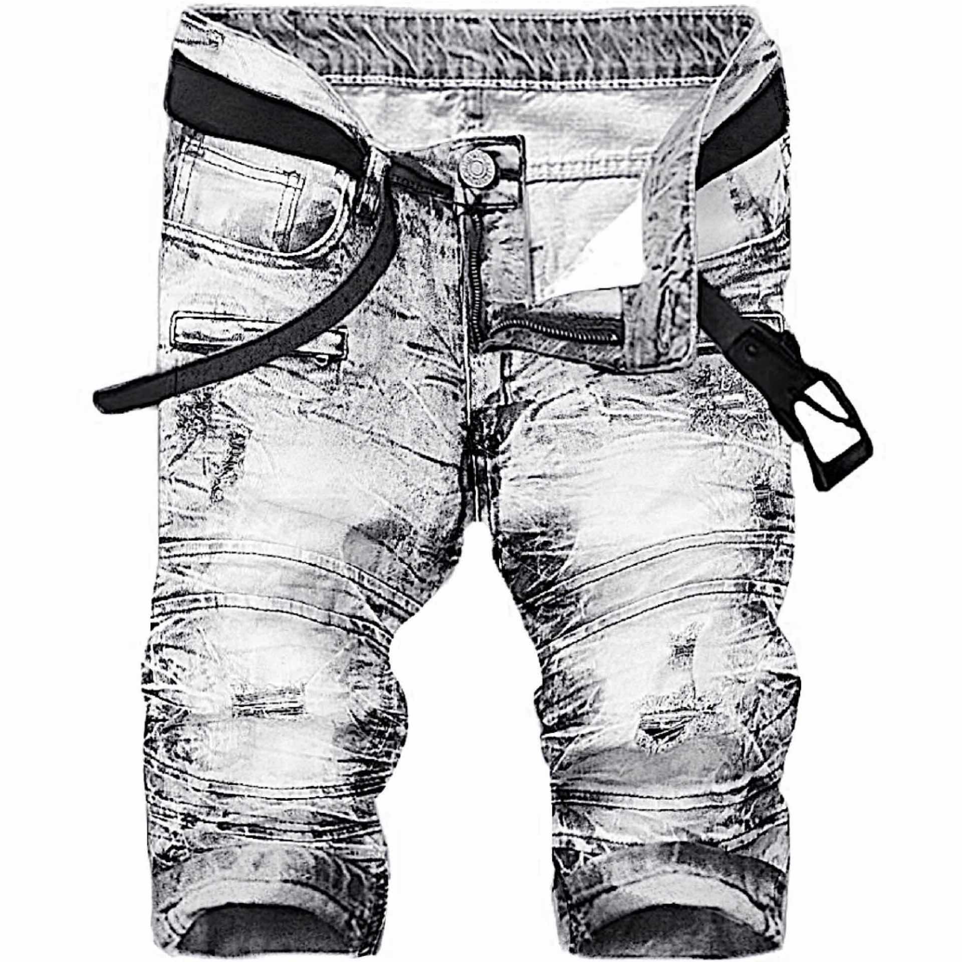 Skinny Ripped Acid Wash Biker Denim Shorts ⚡️
