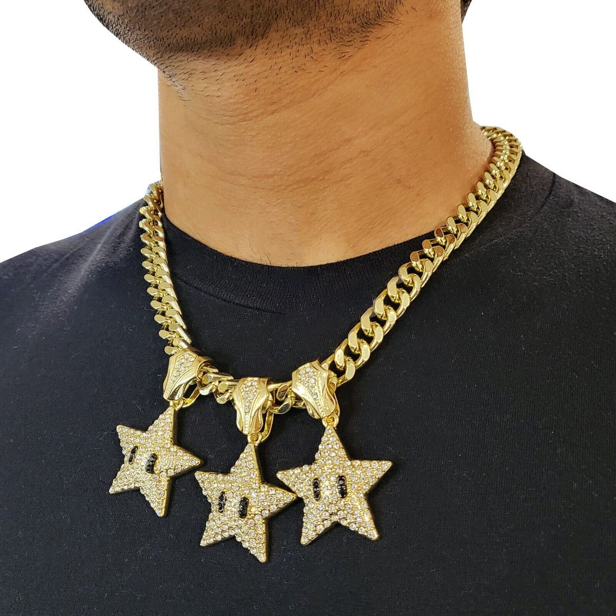 14k Gold Plated 3 Mario Star Charm Pendants Necklace π