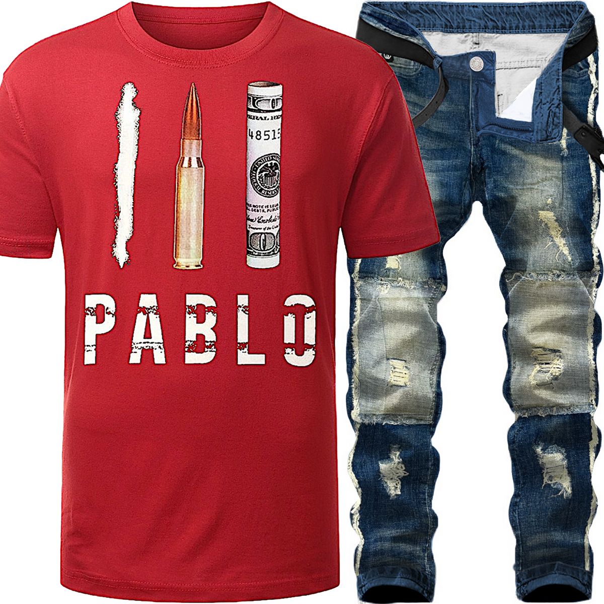2pc Skinny 2 Tones Jeans+Graphic Print T π