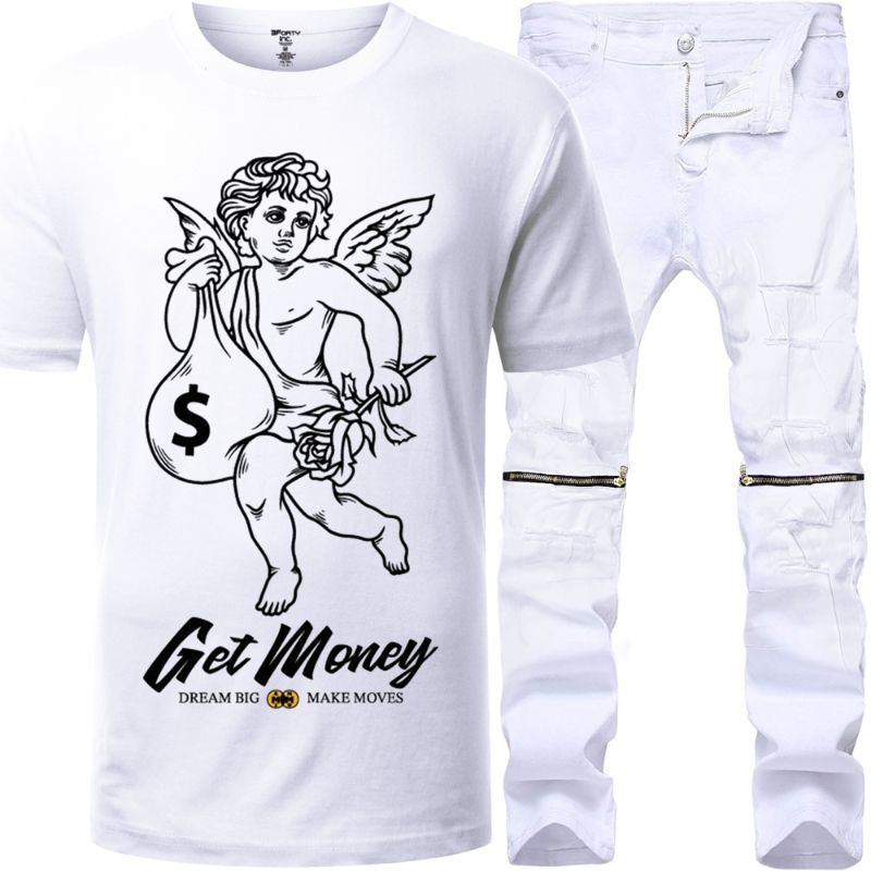 2pc Skinny Knee Zipper Jeans+Get Money T-shirt ⚡️