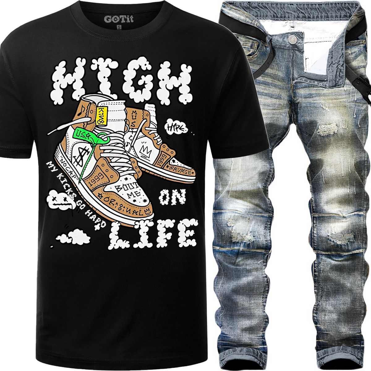 2pc Slim Tapered Jeans+High on Life T-shirt ⚡