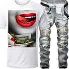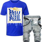 2pc Splatter Denim Shorts+Paid in Full Foil Dripping T-shirt ⚡