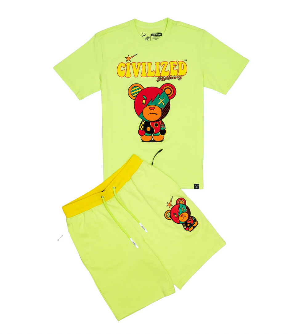 bear chenille shorts set - CV1497-1498 LT-LIME - Civilized