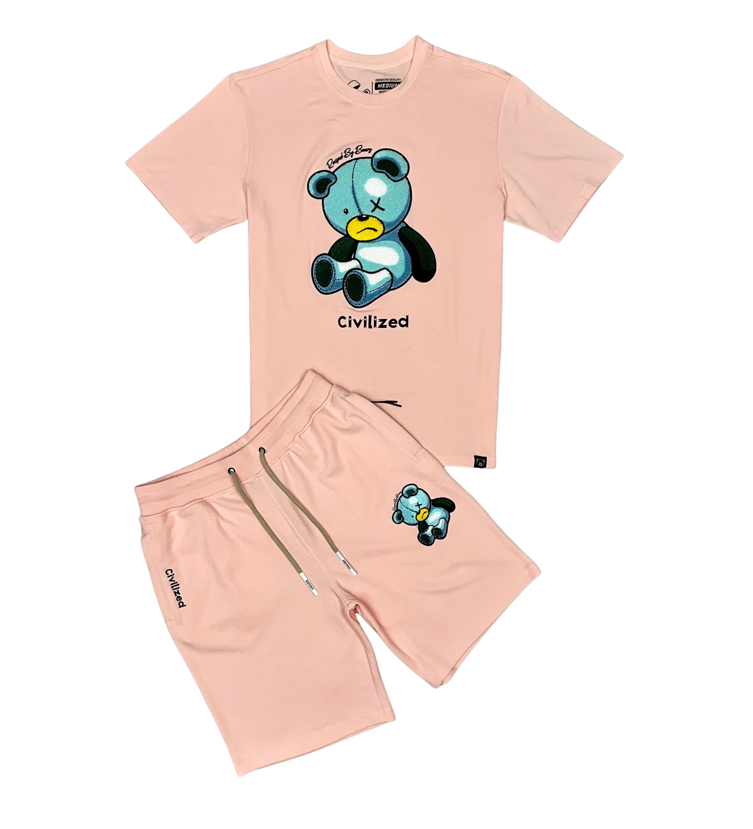 Bear chenille shorts set - CV5002-5003 PINK - Civilized