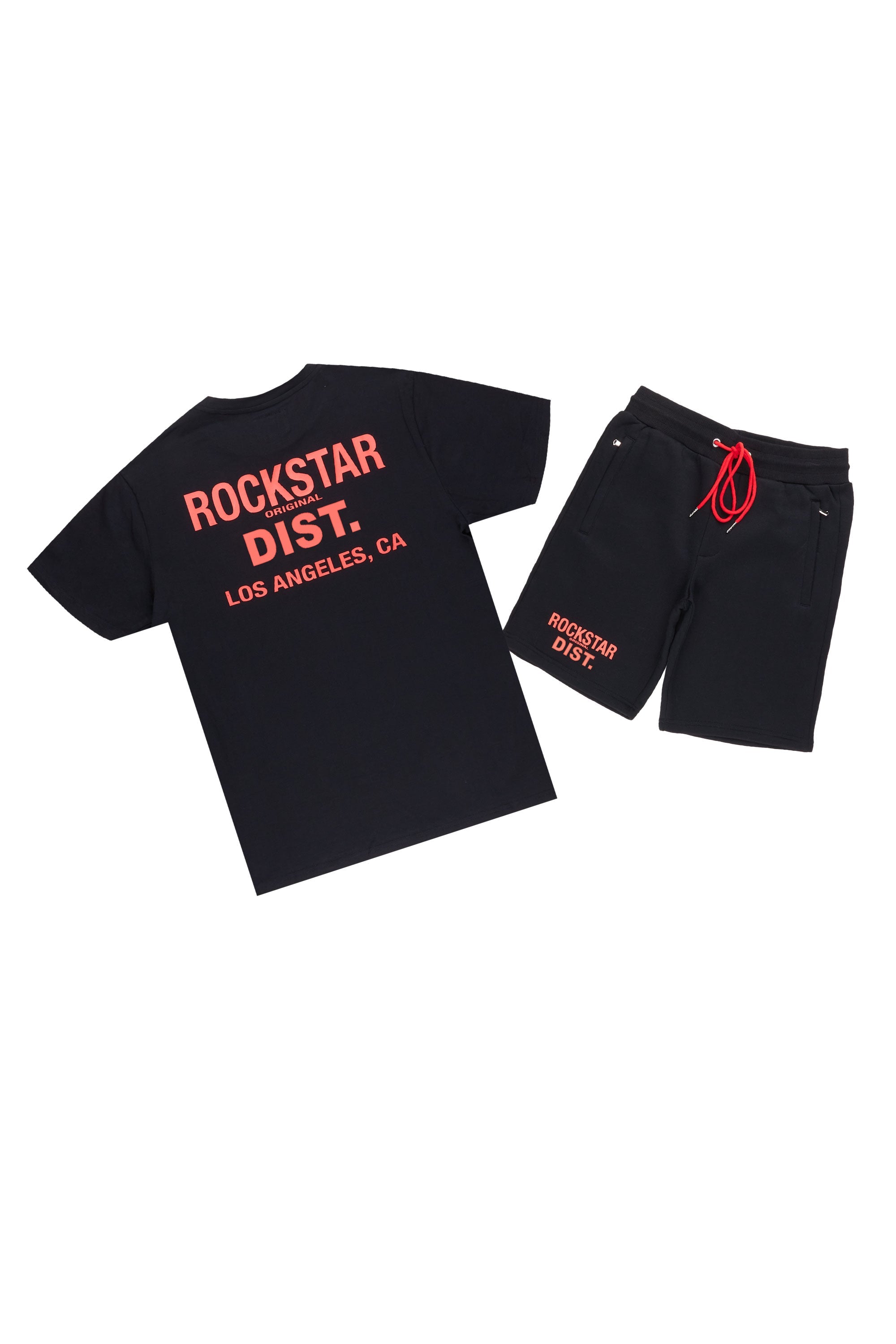 A casual urban two-piece tee and short set for men in black. Designed with lightweight fabric for the perfect all-in-one style.