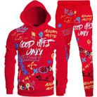 Bundle - 1092123 - 2pc Good Vibes Graffiti Hooded Tracksuit - red - M1031J - M1031H/M2537