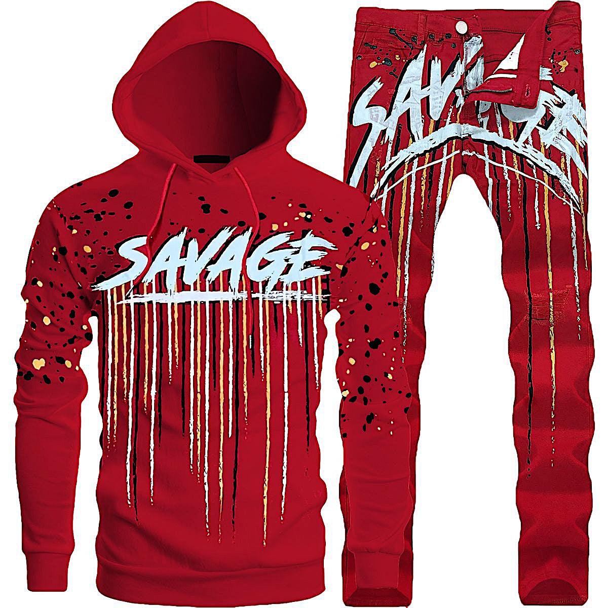 Bundle - 1107010 - Savage Drip Hoodie+ Skinny Jeans - RED -M1022H/M2535+M5455D - RAMS/waimea