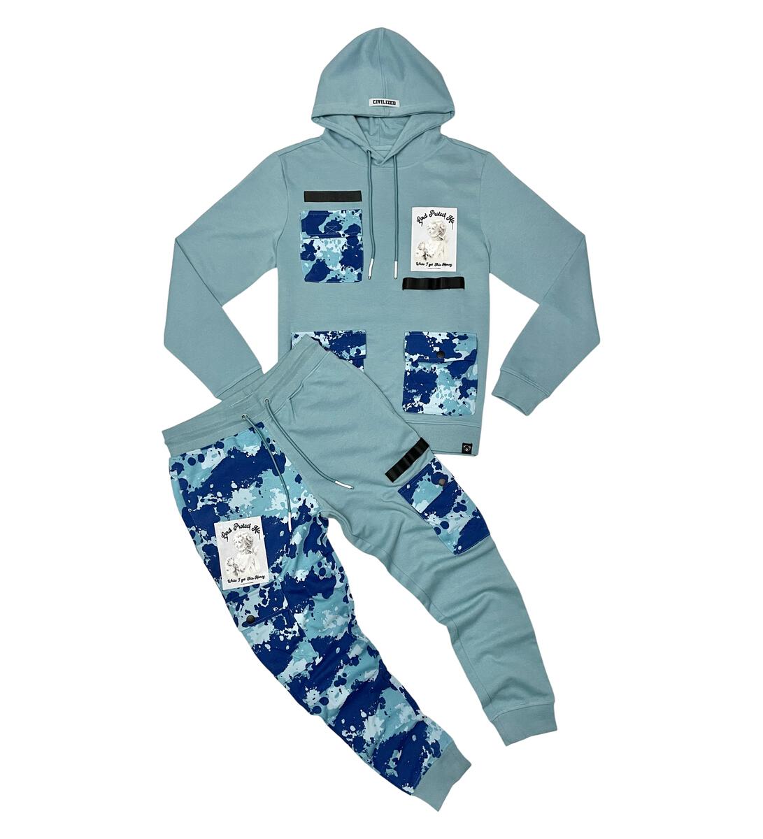 civilized camo mix hoodie Set -CV5067-5068 BLUE - Civilized