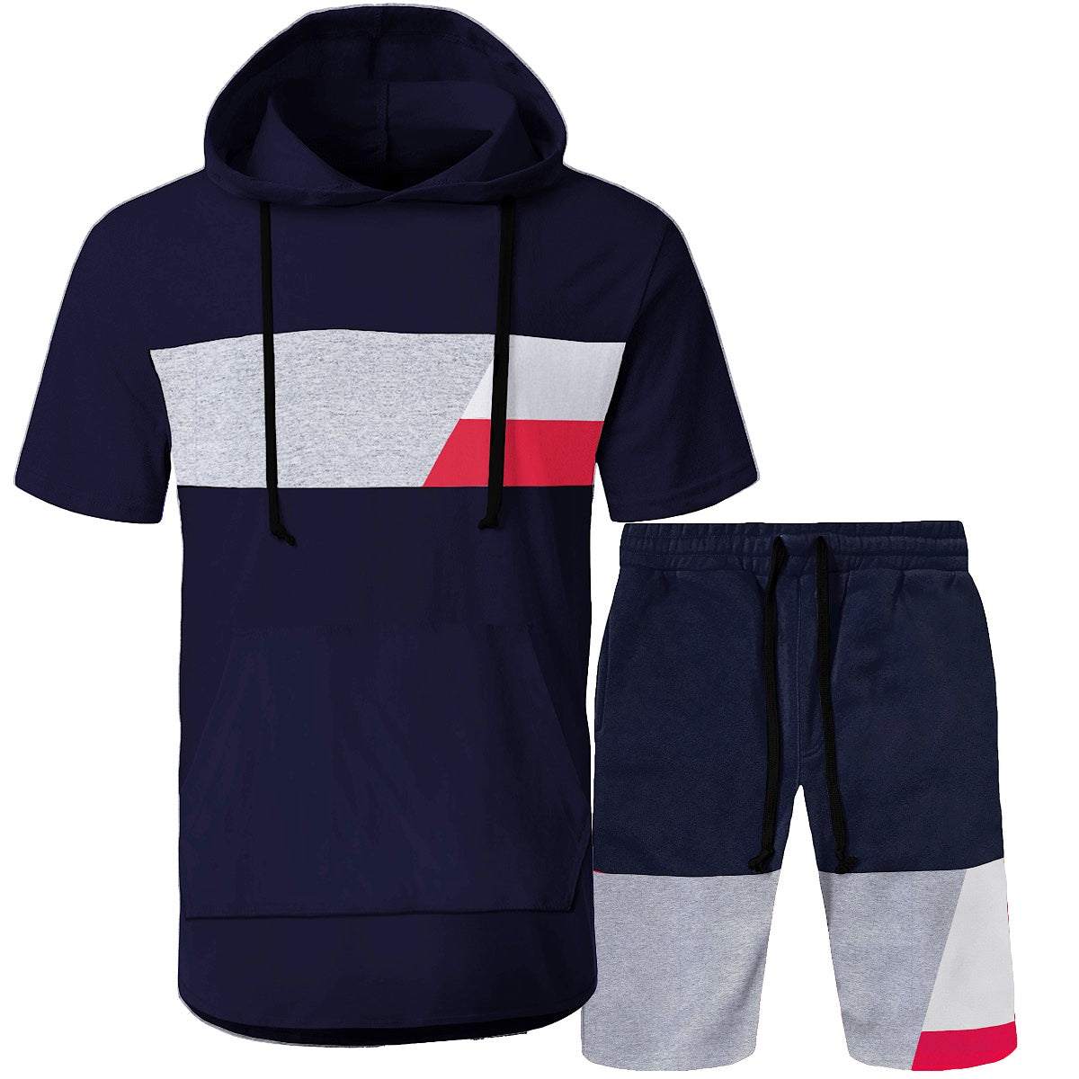 2pc Color Block Hooded Shirt+Shorts Set π